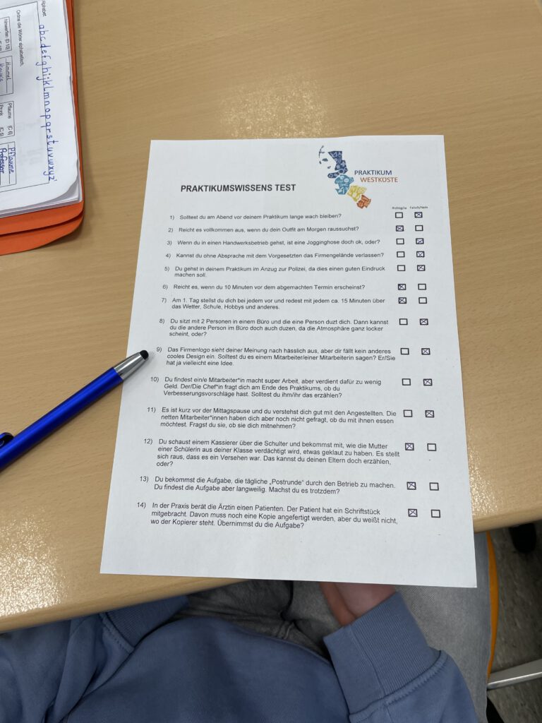 Die Schülerinnen und Schüler konnten viele hilfreiche Tipps für ihr bevorstehendes Praktikum mitnehmen und sich auf typische Situationen im Berufsalltag vorbereiten. Wir wünschen allen viel Erfolg und spannende Einblicke in die Arbeitswelt!